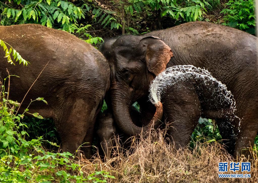 8月9日,象群在云南省玉溪市元江縣境內(nèi)的叢林中覓食。新華社記者 江文耀 攝