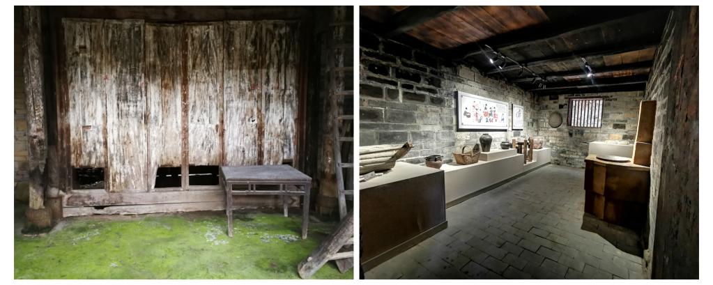 拼版照片:左圖為2017年8月1日,記者拍攝的老宅內(nèi)景。