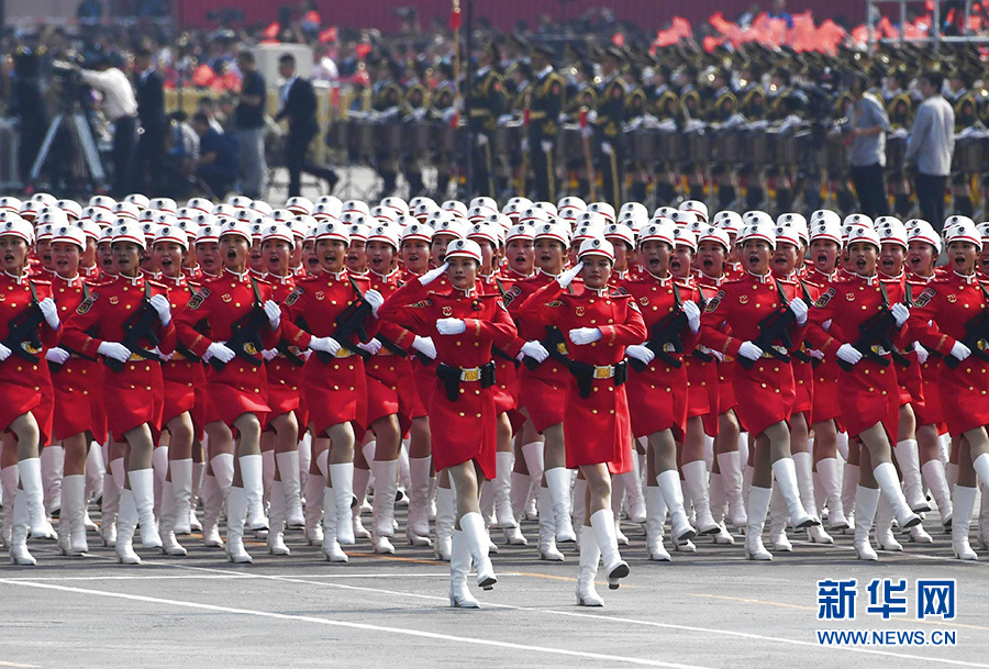 10月1日上午,慶祝中華人民共和國成立70周年大會(huì)在北京天安門廣場隆重舉行。這是群眾游行。 新華社記者 殷剛 攝