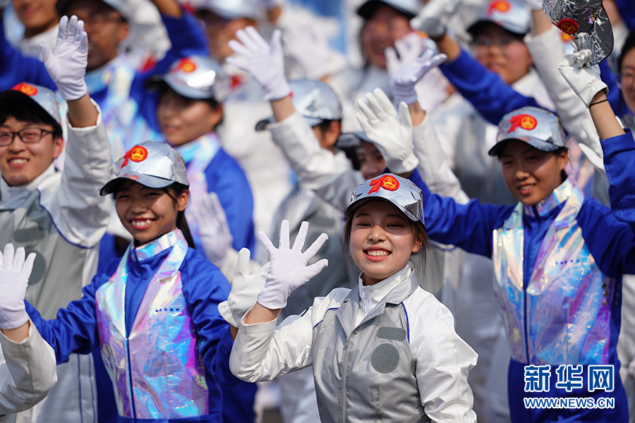 10月1日上午,慶祝中華人民共和國成立70周年大會(huì)在北京天安門廣場隆重舉行。 這是群眾游行中的創(chuàng)新驅(qū)動(dòng)方陣。 新華社記者 周密 攝