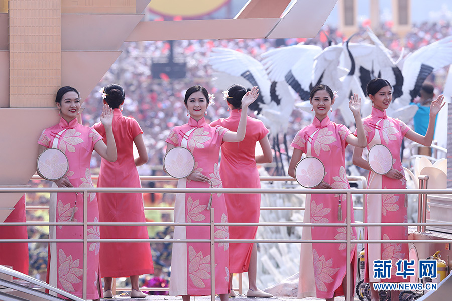 “此次群眾游行方陣?yán)镏袊幕氐姆b集中亮相,展示了國人越來越自信的風(fēng)貌與氣質(zhì)?!北本┓b學(xué)院服裝藝術(shù)與工程學(xué)院教授鄒游說。