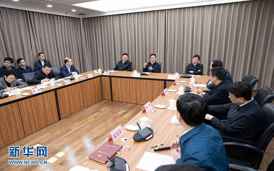 3月18日,中共中央政治局常委、國務(wù)院副總理韓正到住房和城鄉(xiāng)建設(shè)部調(diào)研并主持召開座談會(huì)。 新華社記者 李濤 攝