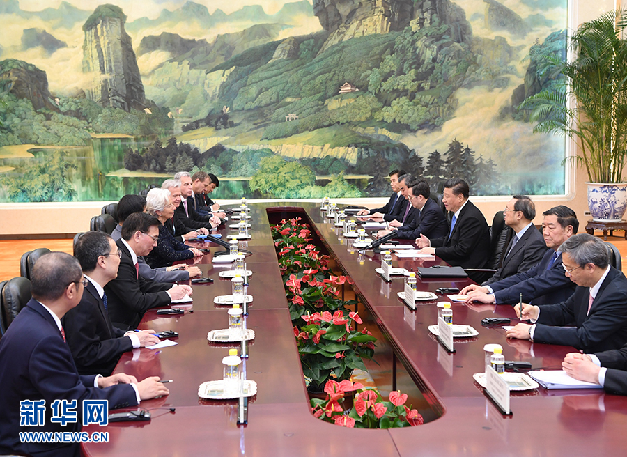 4月24日,國家主席習近平在北京人民大會堂會見國際貨幣基金組織總裁拉加德。 新華社記者 饒愛民 攝
