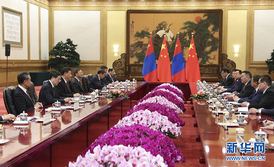 習近平指出,中蒙山水相連,是好鄰居、好朋友、好伙伴。當前,兩國關系進入快車道。中方將秉持親誠惠容理念,繼續積極支持蒙古國經濟發展和民生改善,同蒙方一道,牢牢把握正確政治方向,統籌規劃推進全方位合作,做互尊互信的戰略伙伴、互利互惠的合作伙伴、常來常往的友好伙伴、互幫互助的多邊合作伙伴,努力構筑符合時代要求的中蒙關系,推動兩國關系不斷邁上新臺階。