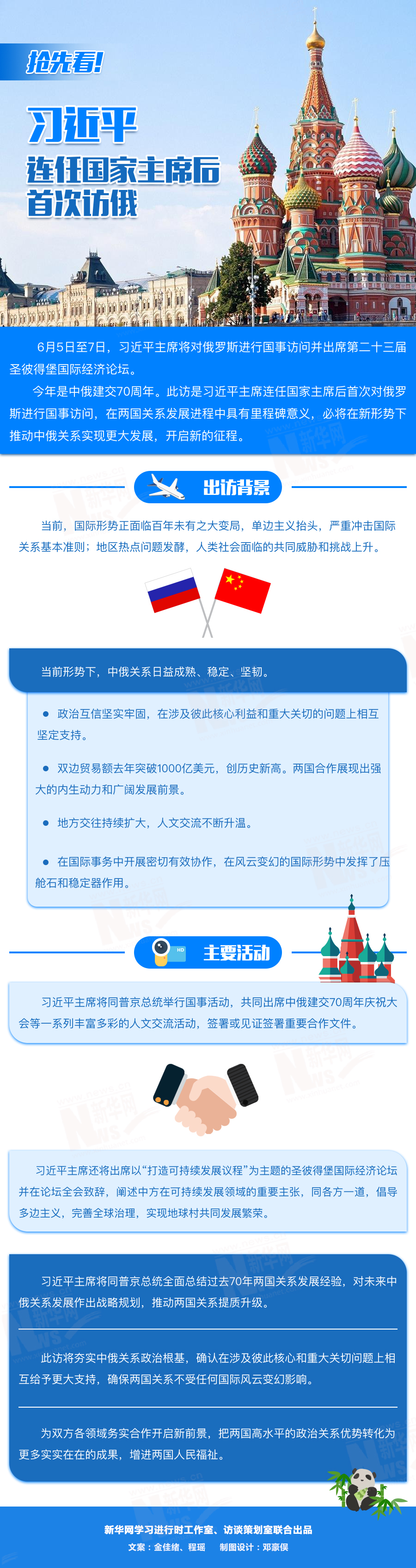 訪問期間,習(xí)近平主席還將出席圣彼得堡國際經(jīng)濟(jì)論壇,在論壇全會致辭,闡述中方在可持續(xù)發(fā)展領(lǐng)域的重要主張,同各方一道,倡導(dǎo)多邊主義,完善全球治理,實(shí)現(xiàn)地球村共同發(fā)展繁榮。