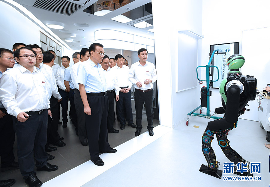 上海電氣是年營業收入超過千億元的綜合性裝備制造企業。李克強來到這里了解當前經濟形勢對市場主體的影響,對企業研發生產的重大裝備走在國際國內前列表示贊許。他勉勵企業瞄準世界一流、更加積極地到國際市場競爭,爭創奇跡,展現更強雄風,為提升我國重大裝備制造水平、助力經濟發展和民生改善多作貢獻。李克強來到張江人工智能島,察看3D視覺遠程醫療、智能神經仿生、智能無人系列技術等創新成果。他說,人工智能就是要把人的智慧匯聚起來,更好地為人服務。要注重基礎研究,發展熱門產業也需要有甘坐冷板凳的人。要加強協同合作,把成果廣泛應用到制造業、服務業等領域,培育壯大新動能,造福人民。