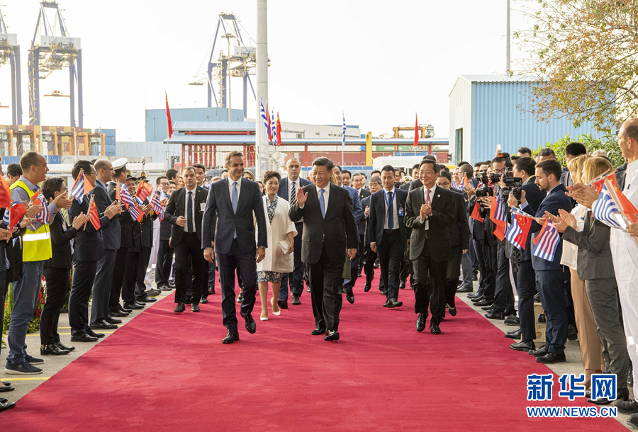 新華社雅典11月11日電(記者霍小光 駱珺 郝薇薇)當(dāng)?shù)貢r(shí)間11月11日,國(guó)家主席習(xí)近平和夫人彭麗媛在希臘總理米佐塔基斯夫婦陪同下,共同參觀中遠(yuǎn)海運(yùn)比雷埃夫斯港項(xiàng)目。