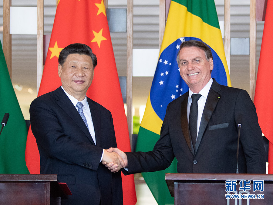 習(xí)近平指出,上個月,博索納羅總統(tǒng)成功對中國進(jìn)行國事訪問,我們達(dá)成的共識正在得到積極落實。在剛剛結(jié)束的第二屆中國國際進(jìn)口博覽會上,巴西參展方的成交額比上屆增長3.6倍,成績喜人。中巴作為東西半球最大的新興市場國家,擁有廣泛共同利益。我們看好巴西發(fā)展前景,對中巴合作充滿信心,愿同巴西分享發(fā)展經(jīng)驗,共享發(fā)展成果,實現(xiàn)共同繁榮。我愿同你一道,把握好、引領(lǐng)好中巴關(guān)系發(fā)展方向。