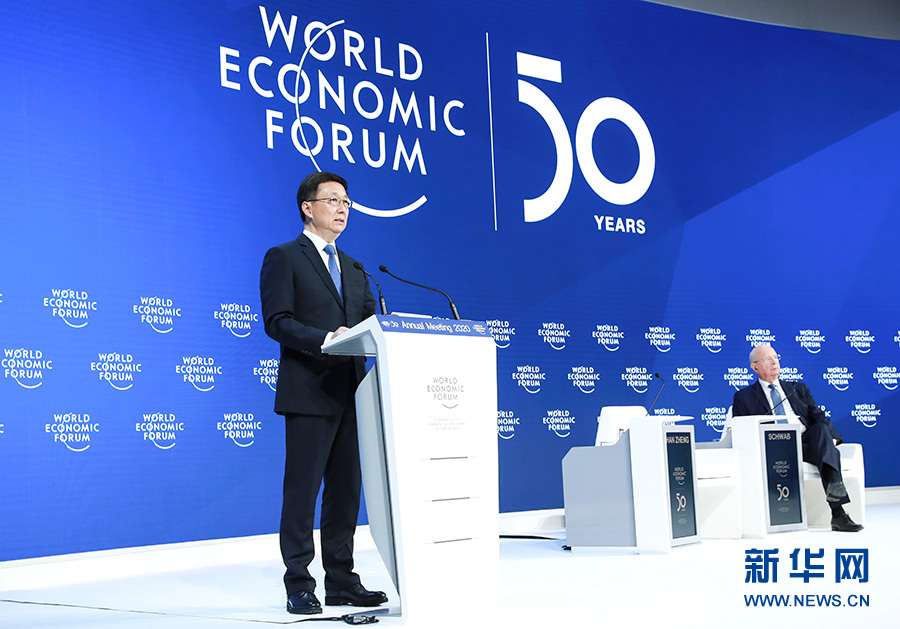 當地時間1月21日,中共中央政治局常委、國務院副總理韓正出席達沃斯世界經濟論壇2020年年會,發表題為“共建開放型世界經濟 推動全球可持續發展”的致辭。 新華社記者 龐興雷 攝