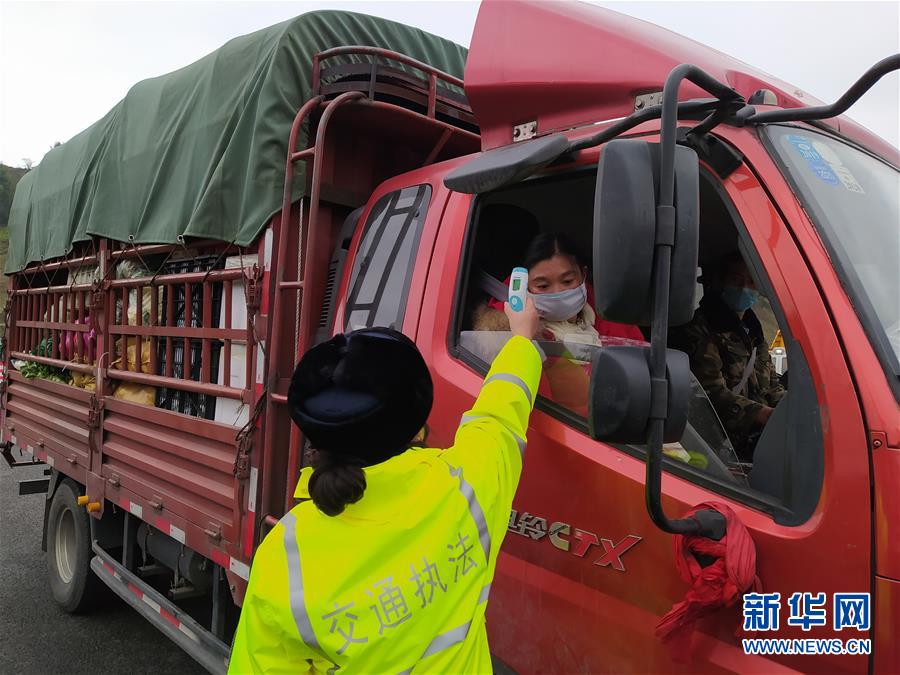 四川省交通運(yùn)輸廳高速公路交通執(zhí)法第五支隊(duì)雅康大隊(duì)隊(duì)長強(qiáng)薇在雅康高速公路上進(jìn)行防疫檢查(2月1日攝)。 新華社發(fā)