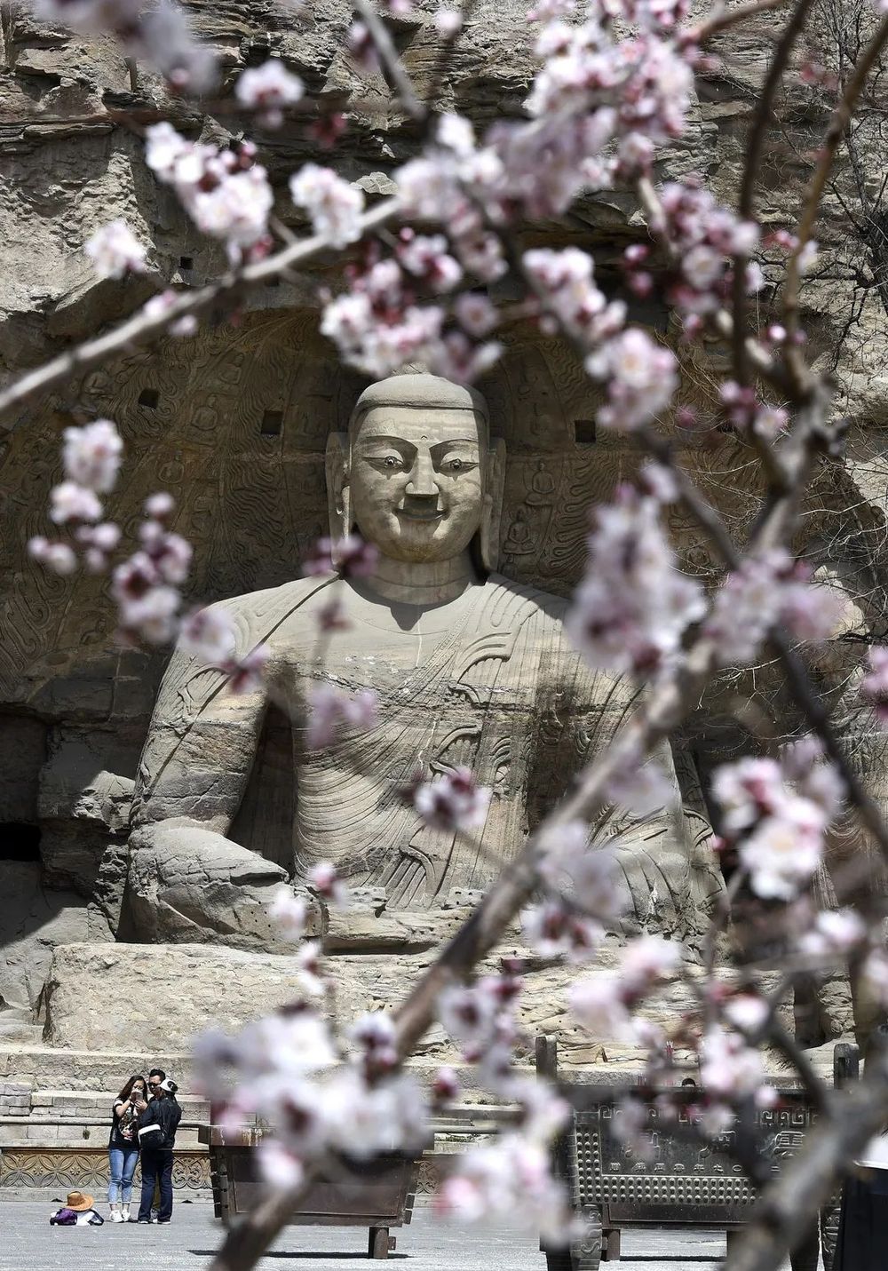 游客在云岡石窟景區參觀(新華社記者燕雁 攝)