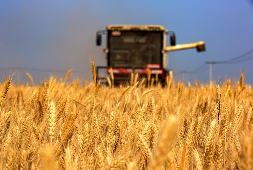 2020年6月10日,在河北省武安市大同鎮(zhèn)馬會村,農機手操作機械設備收割小麥。新華社記者 王曉 攝