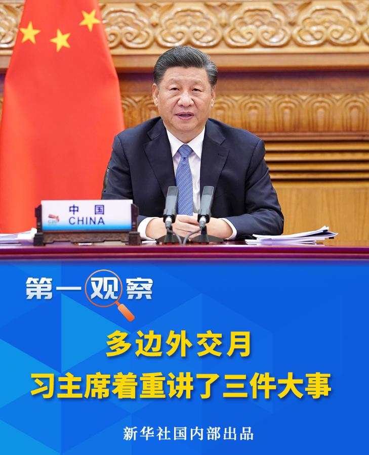繼9月底10月初出席聯(lián)合國(guó)成立75周年系列活動(dòng),11月10日至22日,習(xí)近平主席又以視頻方式接連出席了上合、金磚、APEC、G20四大多邊平臺(tái)的一系列重大外交活動(dòng)。