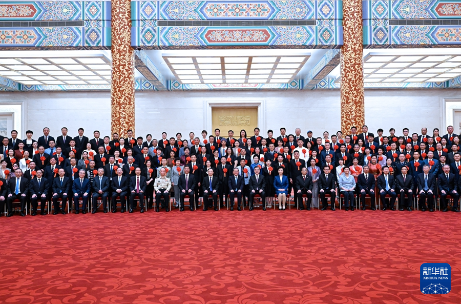 会前,中共中央政治局常委、国务院总理李强会见大会代表并同大家合影。