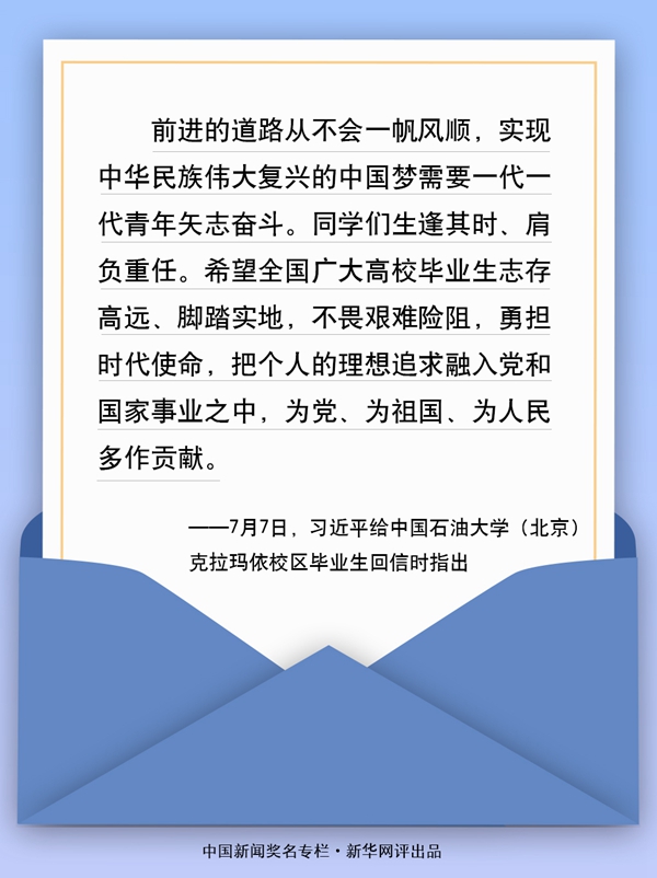近日,中國石油大學(北京)克拉瑪依校區的118名畢業生給習近平總書記寫信,匯報了大學四年學習和思想上的收獲,表達了扎根西部、建設邊疆的堅強決心??倳浕匦趴隙ㄋ麄兊竭吔鶎庸ぷ鞯倪x擇,并對廣大高校畢業生提出殷切期望。