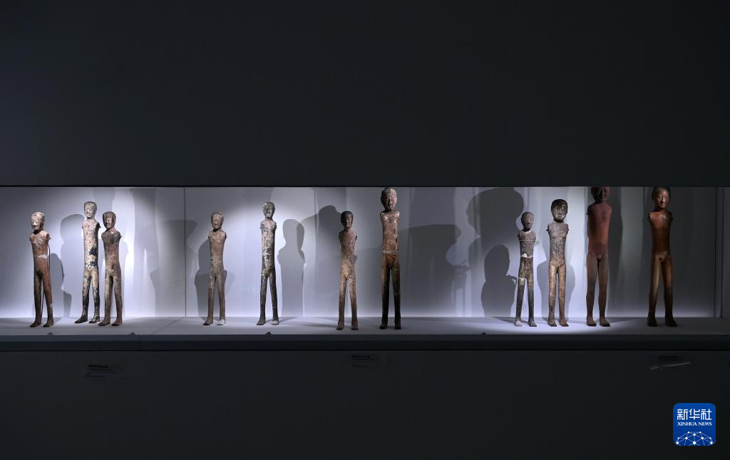 陕西历史博物馆秦汉馆内展出的汉代彩绘扁身立俑(5月13日摄)。