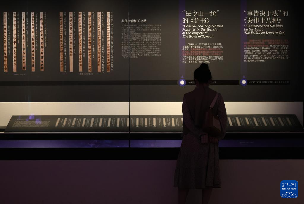 5月6日,观众在陕西历史博物馆秦汉馆了解万里长城的修筑知识。