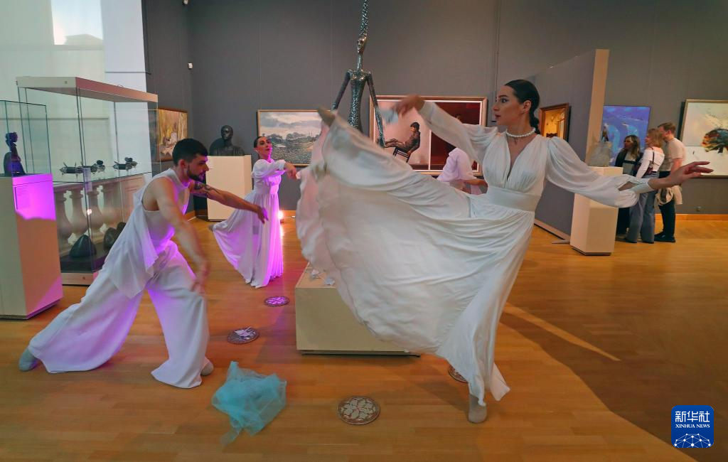 5月18日,演员在白俄罗斯国家美术馆内表演舞蹈。
