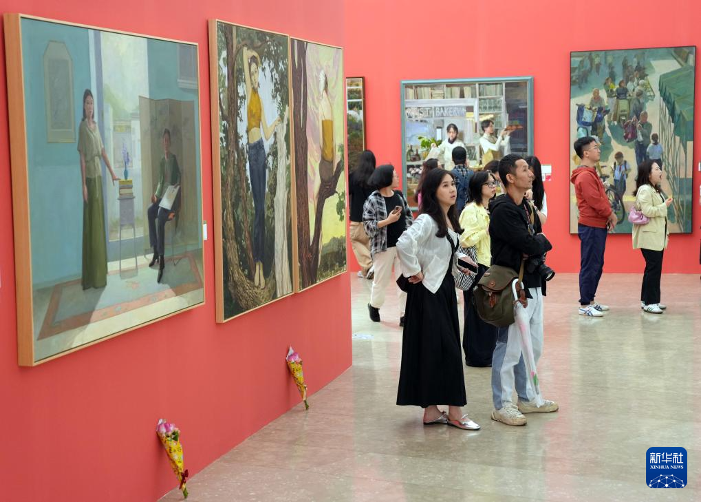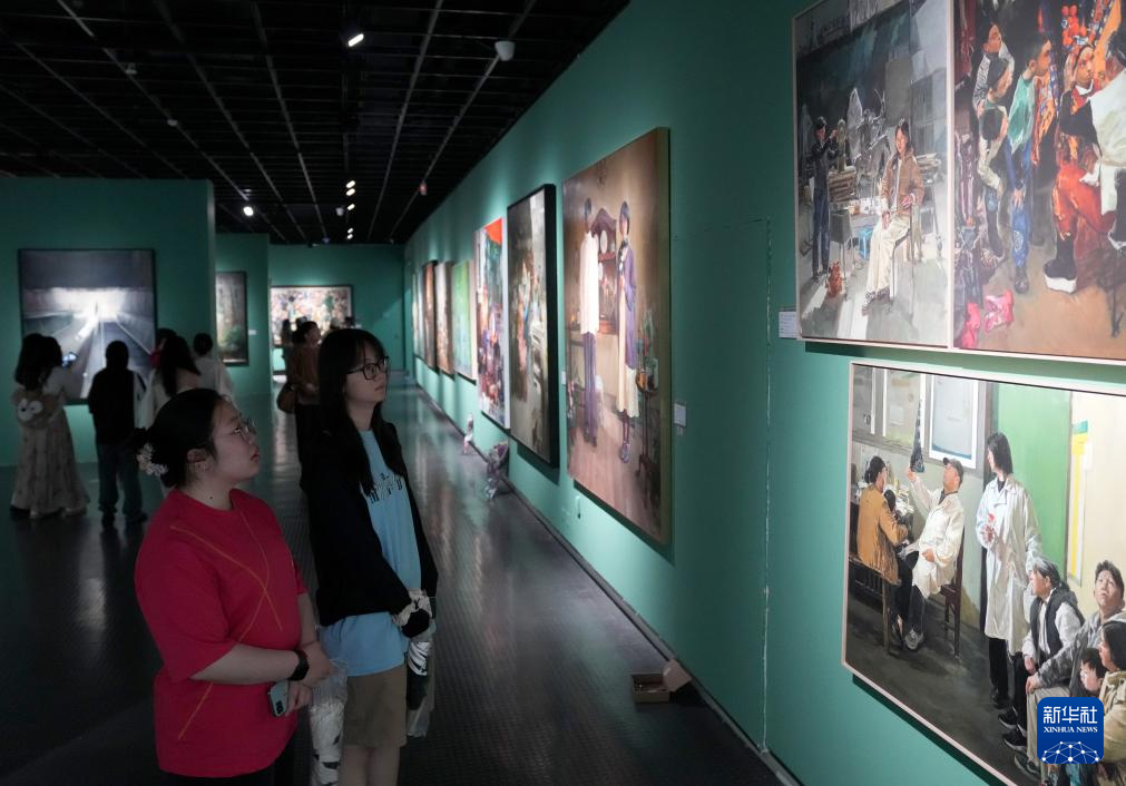 6月1日,观众在浙江美术馆观看中国美术学院毕业生的油画作品。