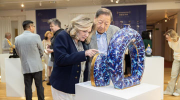 这是6月5日在江西景德镇一个创意瓷器作坊内拍摄的陶瓷作品。