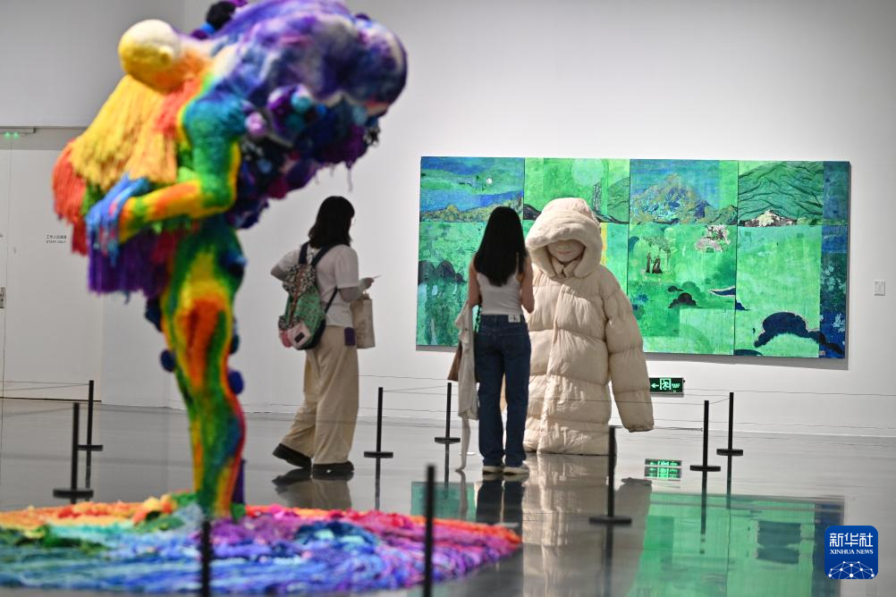 6月14日,参观者在清华大学艺术博物馆欣赏清华大学美术学院2024届本科生毕业作品展。