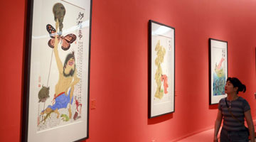 7月4日 ,参观者在“牛津话绘本世界沉浸式互动体验”展览上参观。