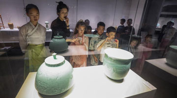7月4日 ,参观者在沉浸式互动体验区观展。