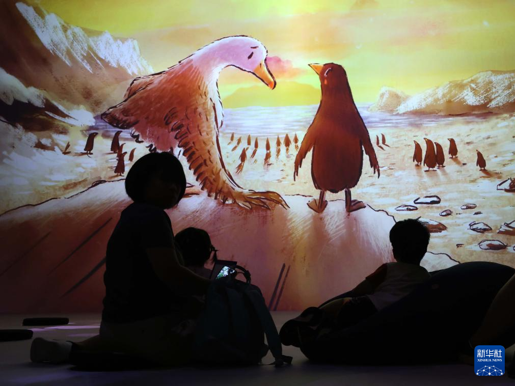 7月4日 ,参观者在“牛津话绘本世界沉浸式互动体验”展览上拍摄。