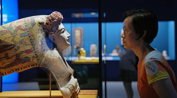 9月1日,游客在宁夏博物馆观赏平吉堡姚氏墓出土文物。