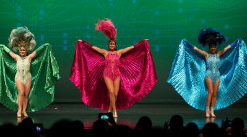 书法用纸被用于舞台布景,搭配了砚台般的水池,舞者沾了“墨水”的身体在舞台上留下有力的“笔迹”。剧场外,五件以水墨画为灵感设计的长衫,连同水墨画互动屏一起展出,延伸水墨为轴的艺术体验。