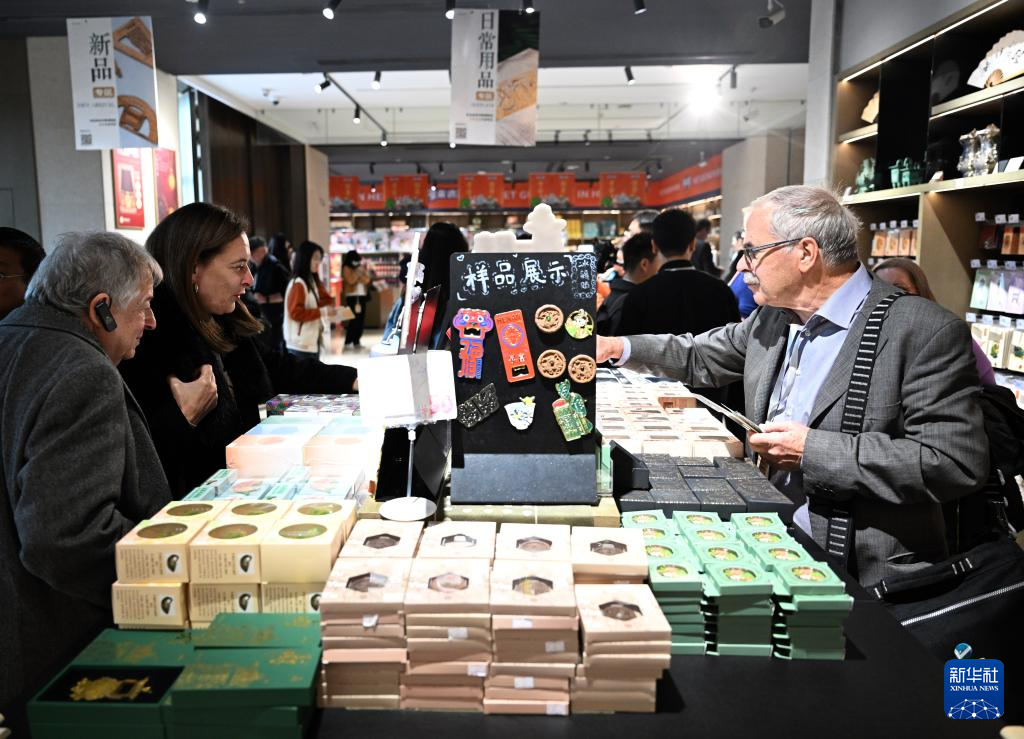 11月4日,外宾在河南博物院选购文创产品。
