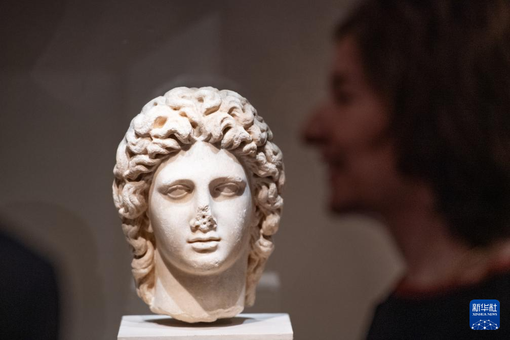 这是11月20日拍摄的来自希腊保罗和亚历珊德拉博物馆的藏品亚历山大头像。