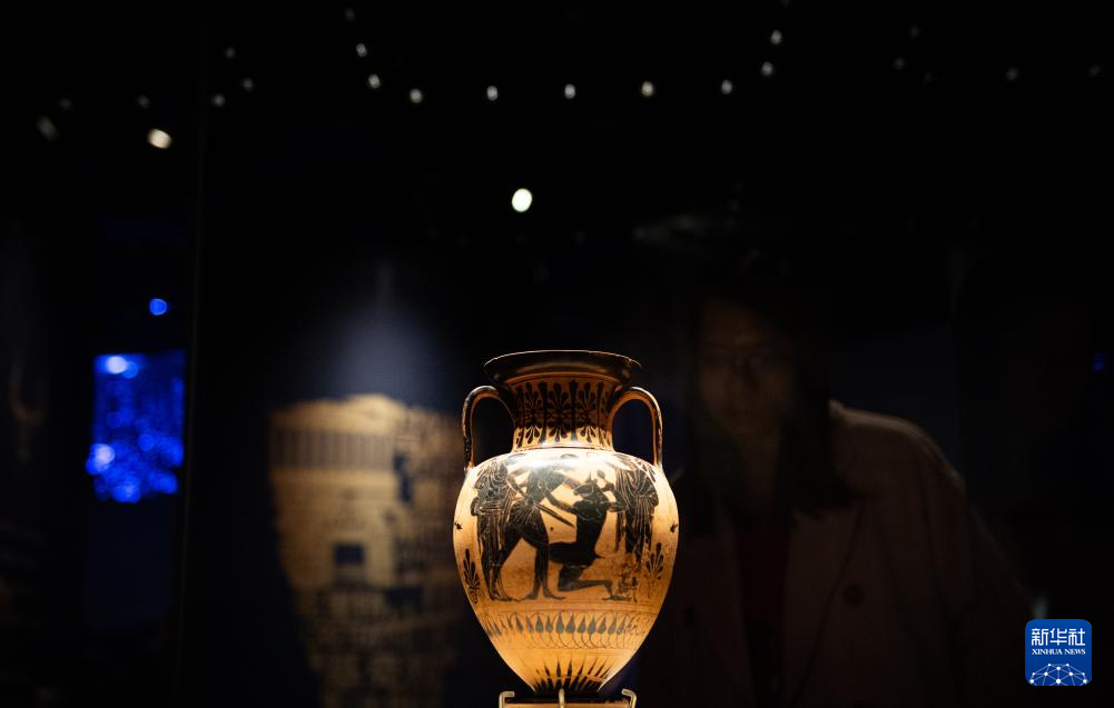 这是11月20日拍摄的来自希腊国家考古博物馆的藏品黑绘双耳瓶。