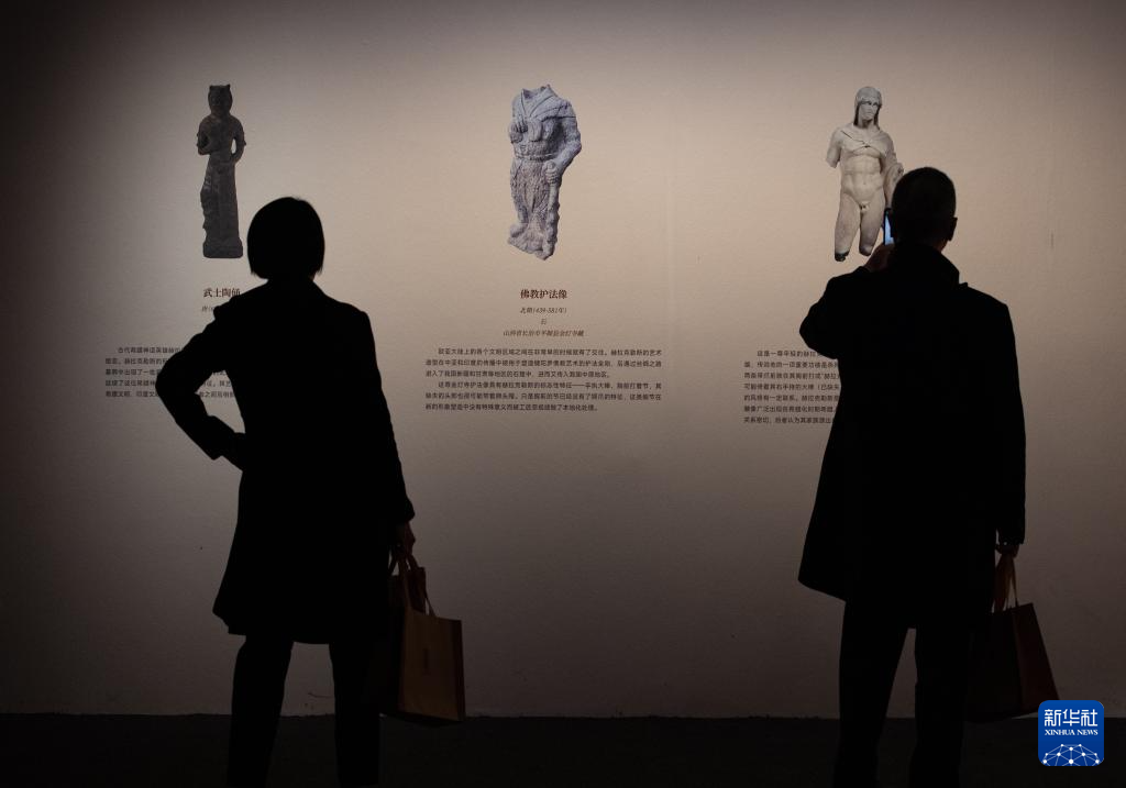 11月20日,参观者在观看古代希腊雕像艺术对古代中国雕像艺术影响的介绍。
