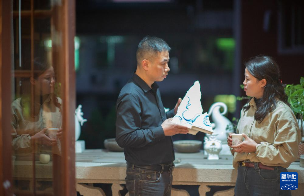 12月6日,彭成雄与妻子郑宝珠在位于福建省泉州市德化县的工作室内交流设计思路。
