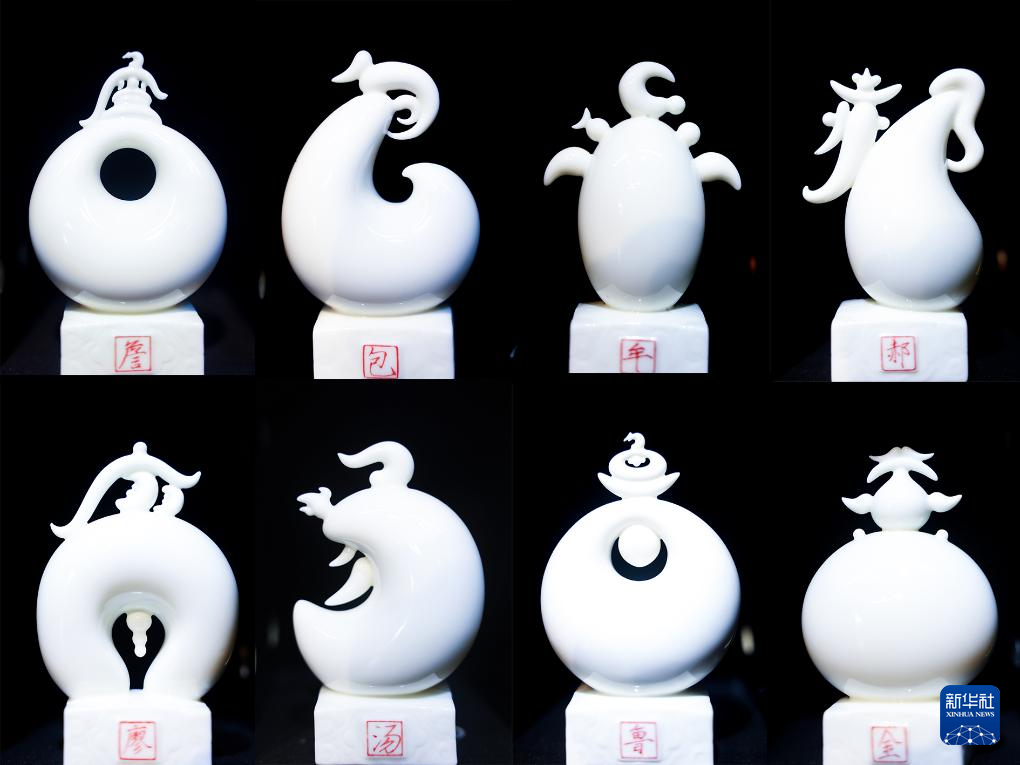 如今的德化陶瓷产业正蓬勃发展,众多陶瓷从业者薪火相传,在传承的同时不断探寻德化陶瓷的创新与发展。彭成雄就是其中之一,他将中国汉字与传统陶瓷工艺巧妙结合,通过瓷雕将汉字的二维线条、结构以立体的形态表现出来,呈现出近似象形文字的趣味感。彭成雄是这样介绍自己的艺术理念:“古代甲骨文是造像‘物’的‘字’,而我是创作一个像‘字’的‘物’。”他还将标点符号融入自己的艺术作品中,其《十二生肖》《百家姓》系列作品,深受人们的欢迎。