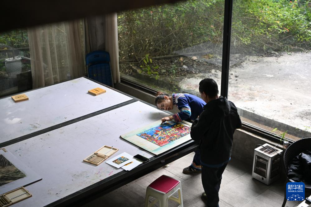12月9日,在云南普洱学院那柯里绝版木刻教学实践基地,绝版木刻画师在进行版画创作。