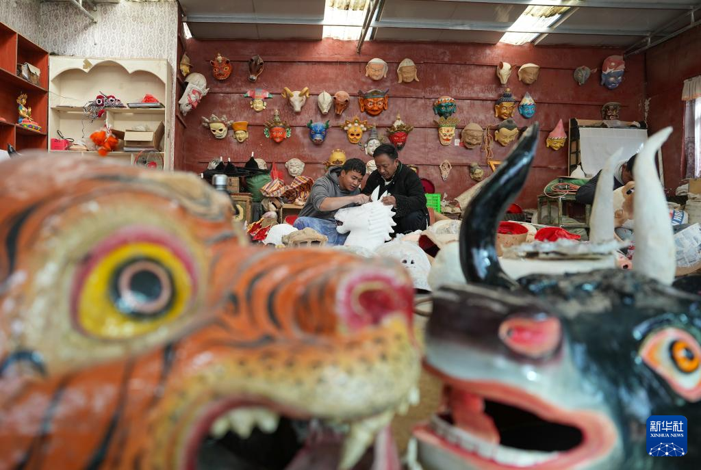 12月9日,合作社的工匠在查看西藏传统面具。