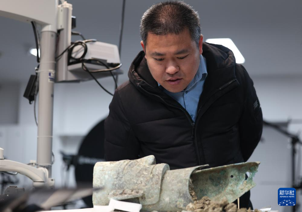 12月16日,三星堆研究院工作人员在修复青铜文物。