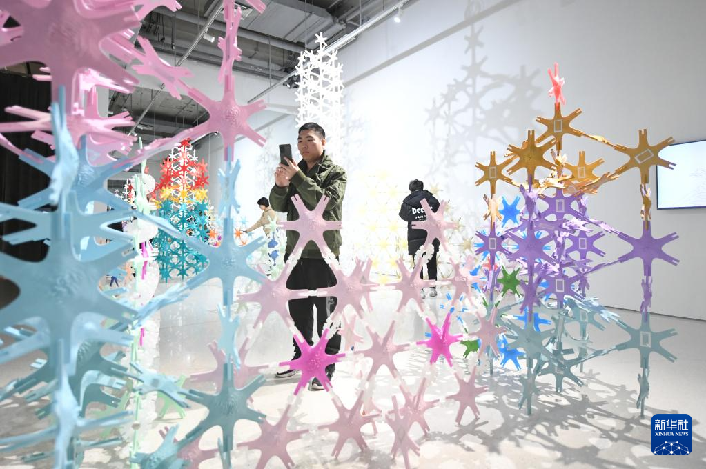 12月16日,在北京时代美术馆,观众参观《能量宇宙》艺术展。