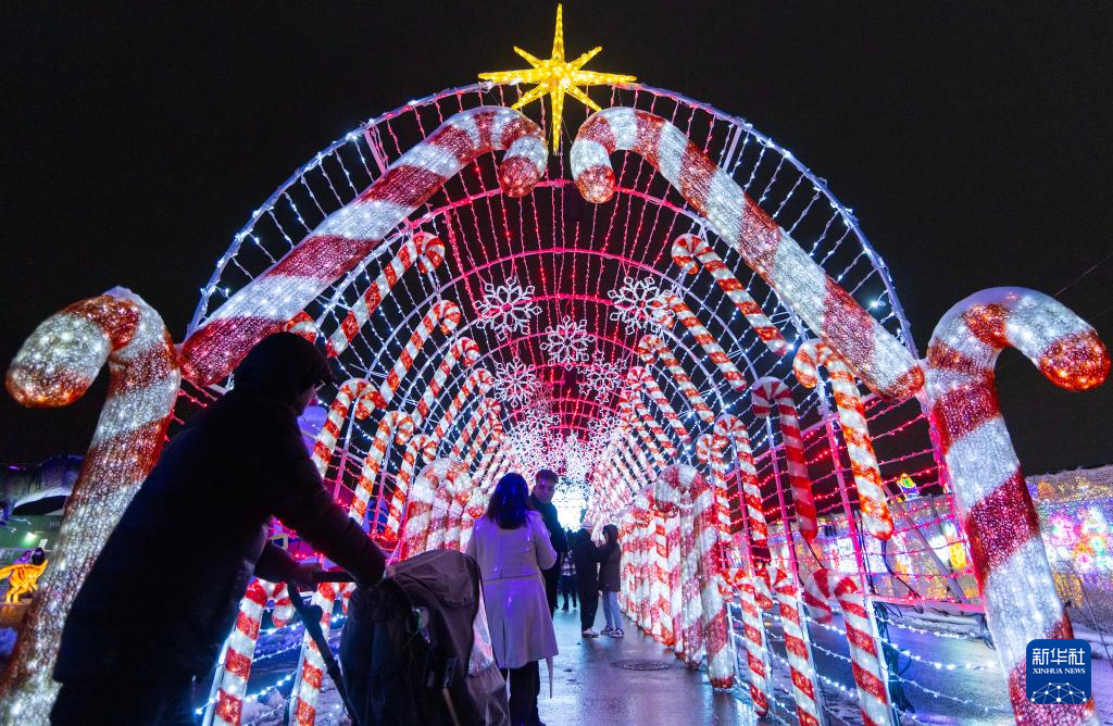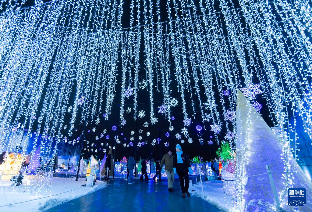 12月24日,人们在加拿大安大略省米西索加举办的灯展上参观。