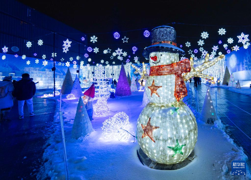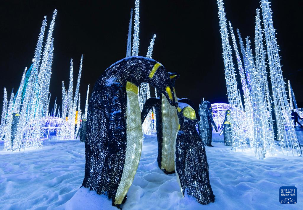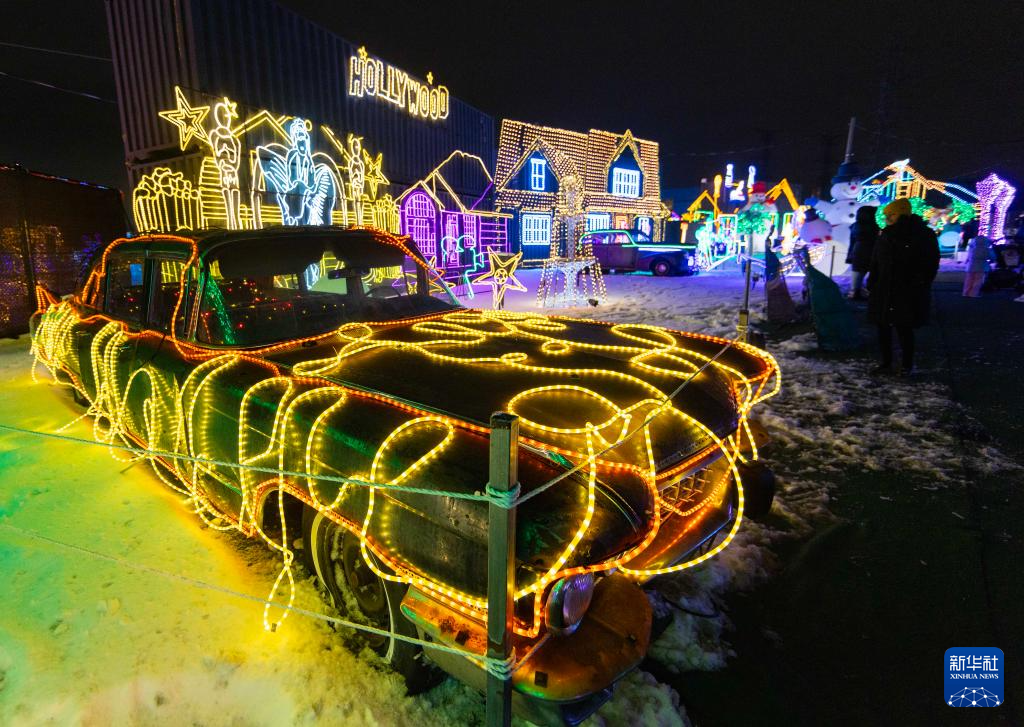 这是12月24日在加拿大安大略省米西索加举办的灯展上拍摄的彩灯作品。