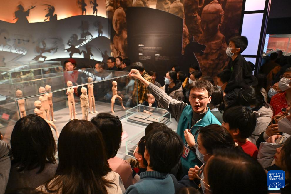 2025年1月1日,讲解员在天津博物馆“天开一统——秦汉文物主题展”上为观众讲解。