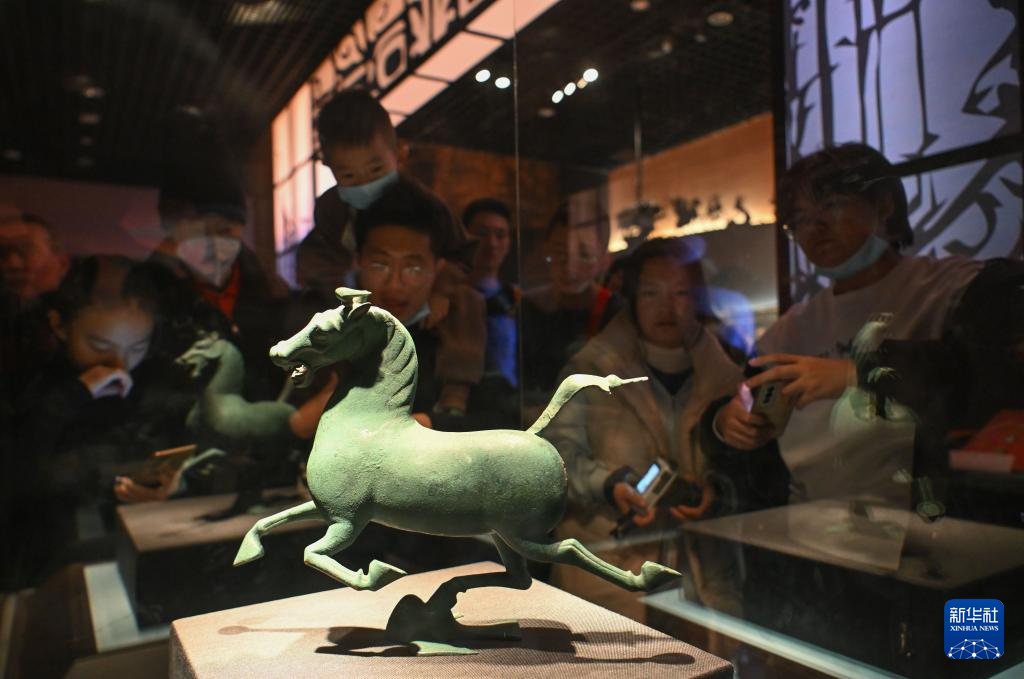 2025年1月1日,在天津博物馆,观众参观展览展出的马踏飞燕。