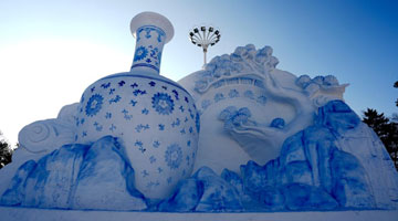 1月18日,游客在河北承德避暑山庄赏花灯。