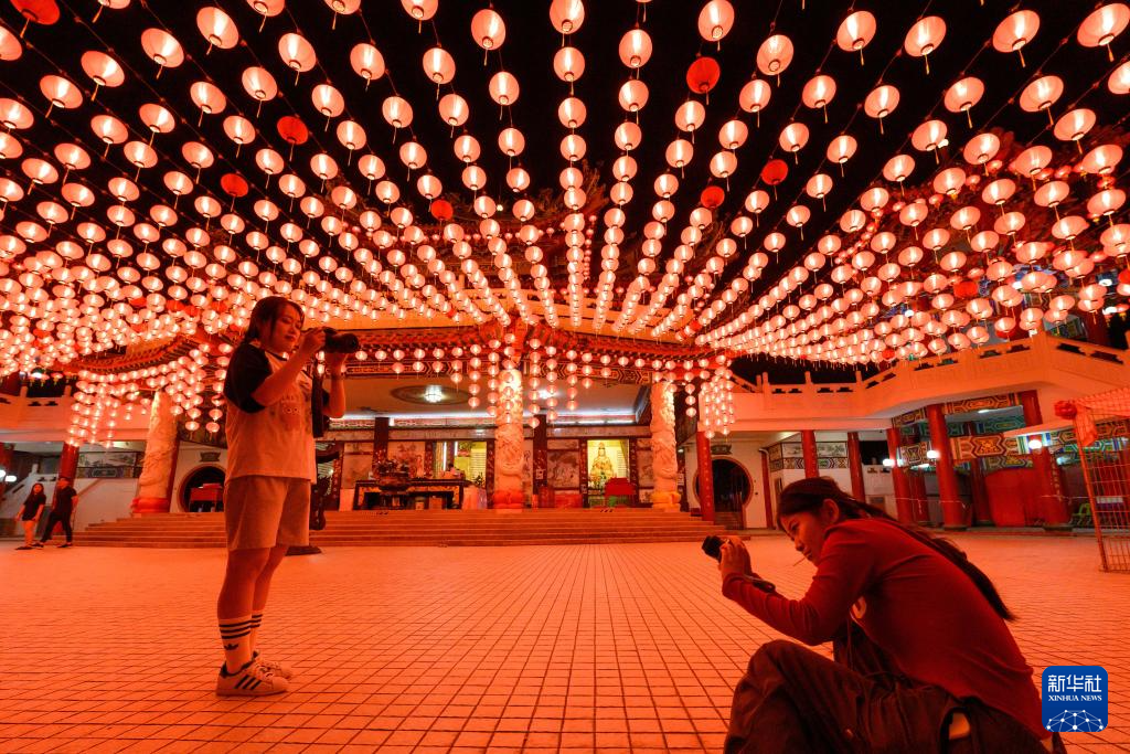 吉隆坡天后宫亮灯迎新春-新华网