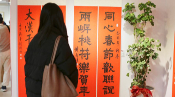 当日,“幸福万家”第二十届老西门春联大会在上海黄浦区老西门街道举行。市民游客不仅可以在现场领取书法家和社区书法爱好者们手书的春联福字,还能在非遗展示摊位前体验传统手工艺,蛇年春节味道渐浓。