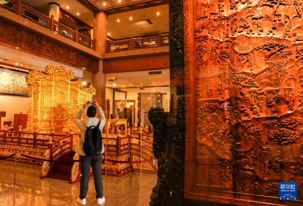 3月15日,游客在中国紫檀博物馆内参观、拍摄。