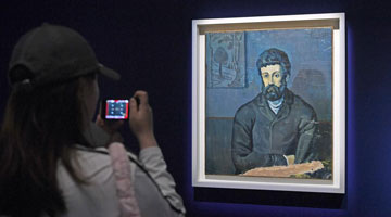 3月24日,府学胡同小学学生在书画摄影展开幕式上展示手工作品。