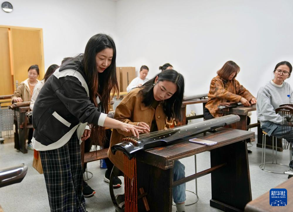 4月7日晚,在上海市群众艺术馆,古琴课程的学员们在上课。